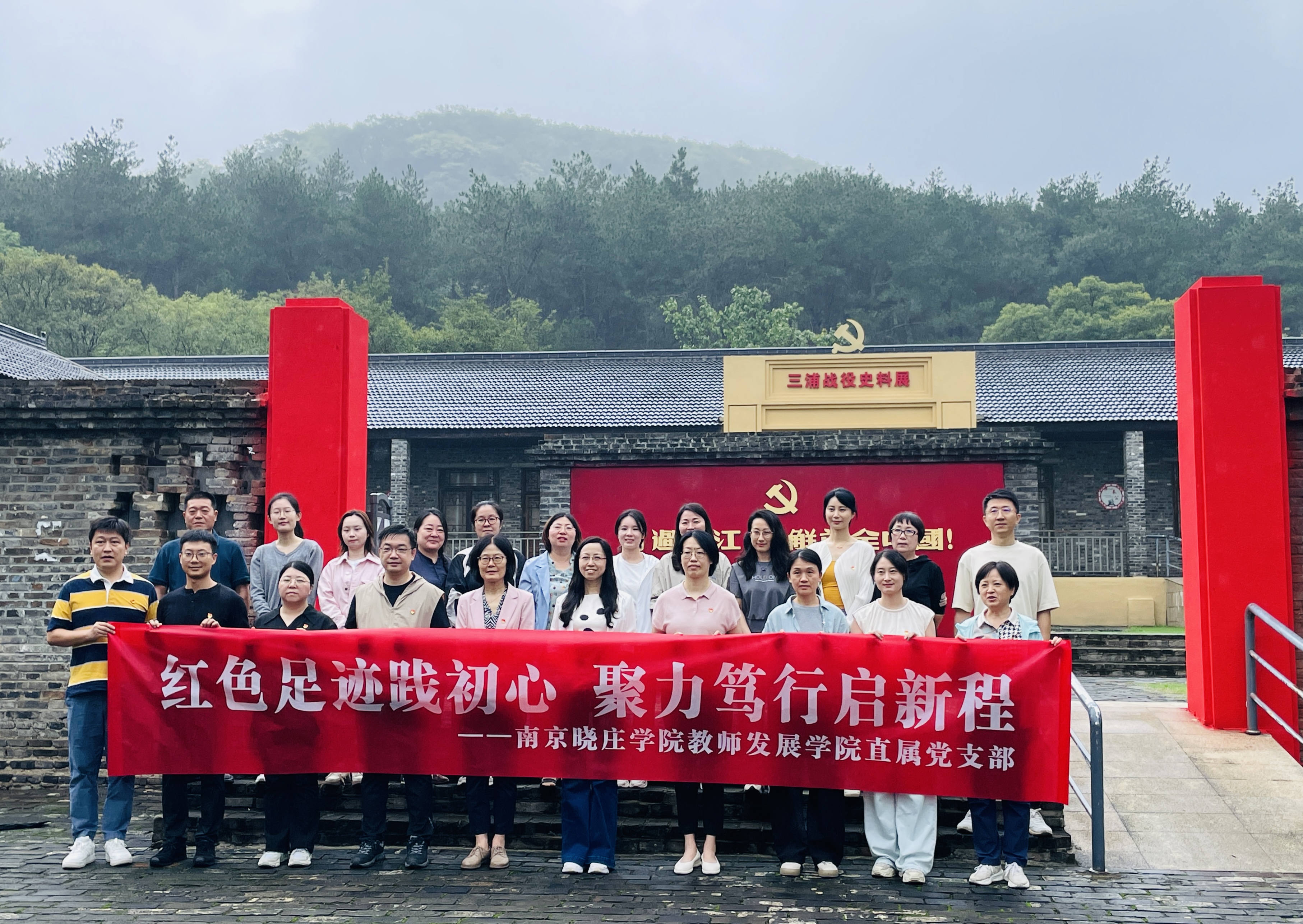 活动围绕学史增信、知行合一主线,组织全体教职工赴浦口老山红色教育基地开展红色研学系列活动。大家首先来到三浦战役史料展,通过丰富的历史图片、详实的文字资料和珍贵的革命文物,深入了解了三浦战役在解放战争中的历史背景、战斗过程及其重要战略意义,在回溯革命先辈浴血奋战、解放南京的壮阔历程中,深刻领悟了新中国成立背后所承载的厚重历史与伟大牺牲。在鲜红的党旗下,全体党员齐举右拳、庄严宣誓,重温入党誓词,坚定理想信念,砥砺奋进精神。参观结束后,大家踏上“重走长征路”沉浸式体验路线,亲身体验“四渡赤水”“飞夺泸定桥”“过草地”等长征途中极具代表性的艰难险阻,感受红军战士不怕牺牲、排除万难、勇往直前的英雄气概,深刻体会到伟大长征精神的丰富内涵。