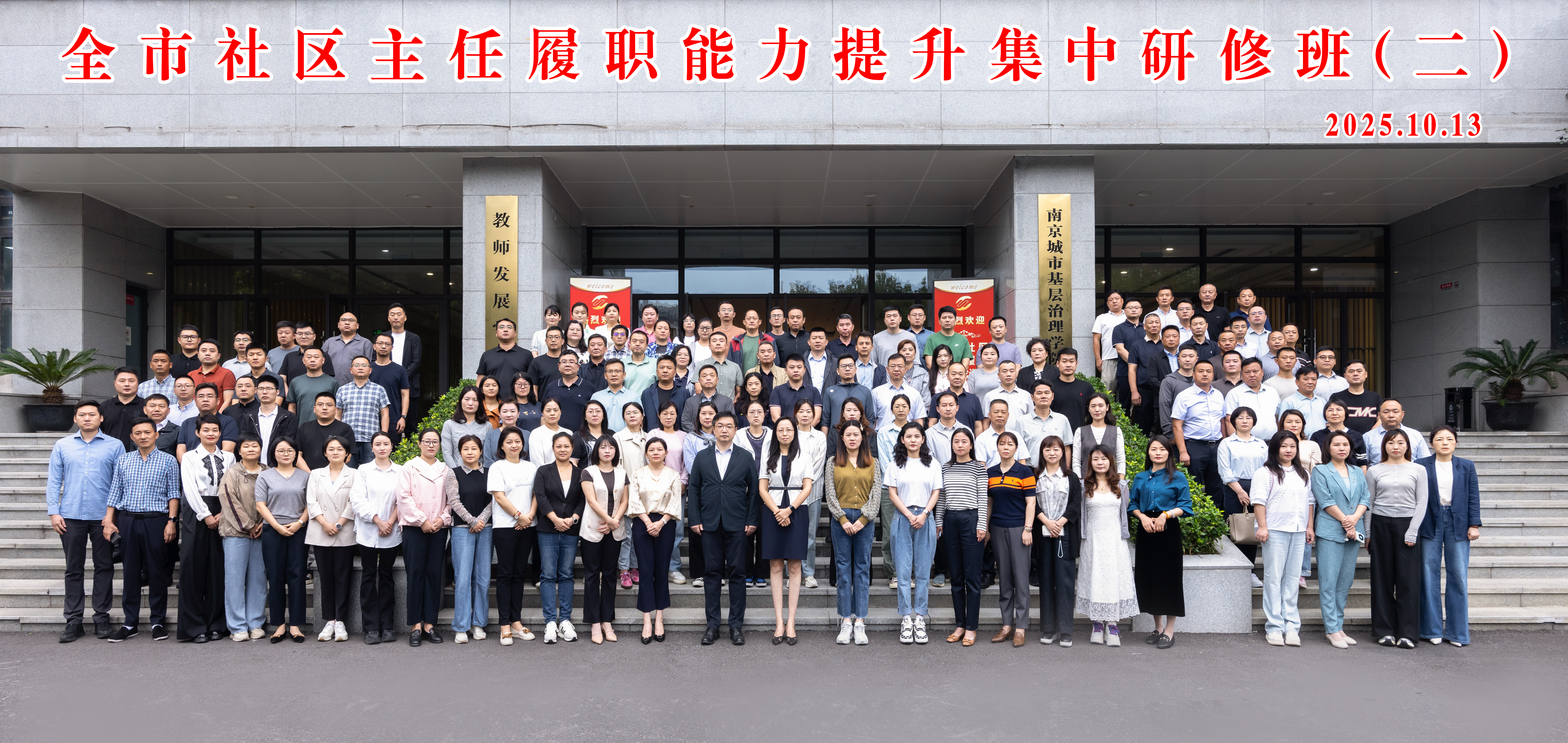 10月13日上午,全市社区主任履职能力提升集中研修班(二)在南京城市基层治理学院顺利开班,我院直属党支部书记周鹃、副院长丁涛出席开班式,来自南京市各区的132名社区主任参加培训。