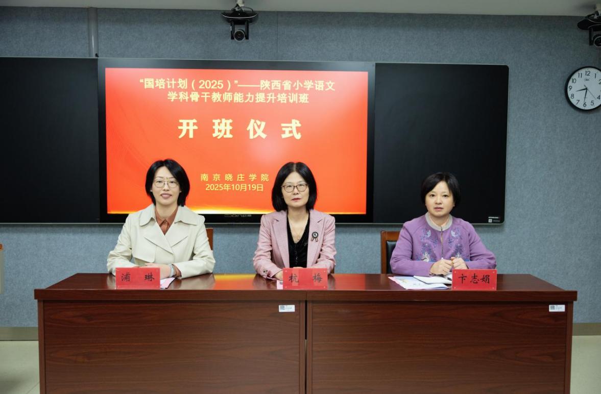 2025年10月19日,由南京晓庄学院教师发展学院承办的“国培计划(2025)”——陕西省小学语文学科骨干教师能力提升培训班开班仪式在我校莫愁校区顺利举行,教师发展学院院长杭梅、教师教育培训部主任卞志娟,以及来自陕西省各市的50名小学语文骨干教师共同参与仪式。仪式由浦琳副院长主持。
