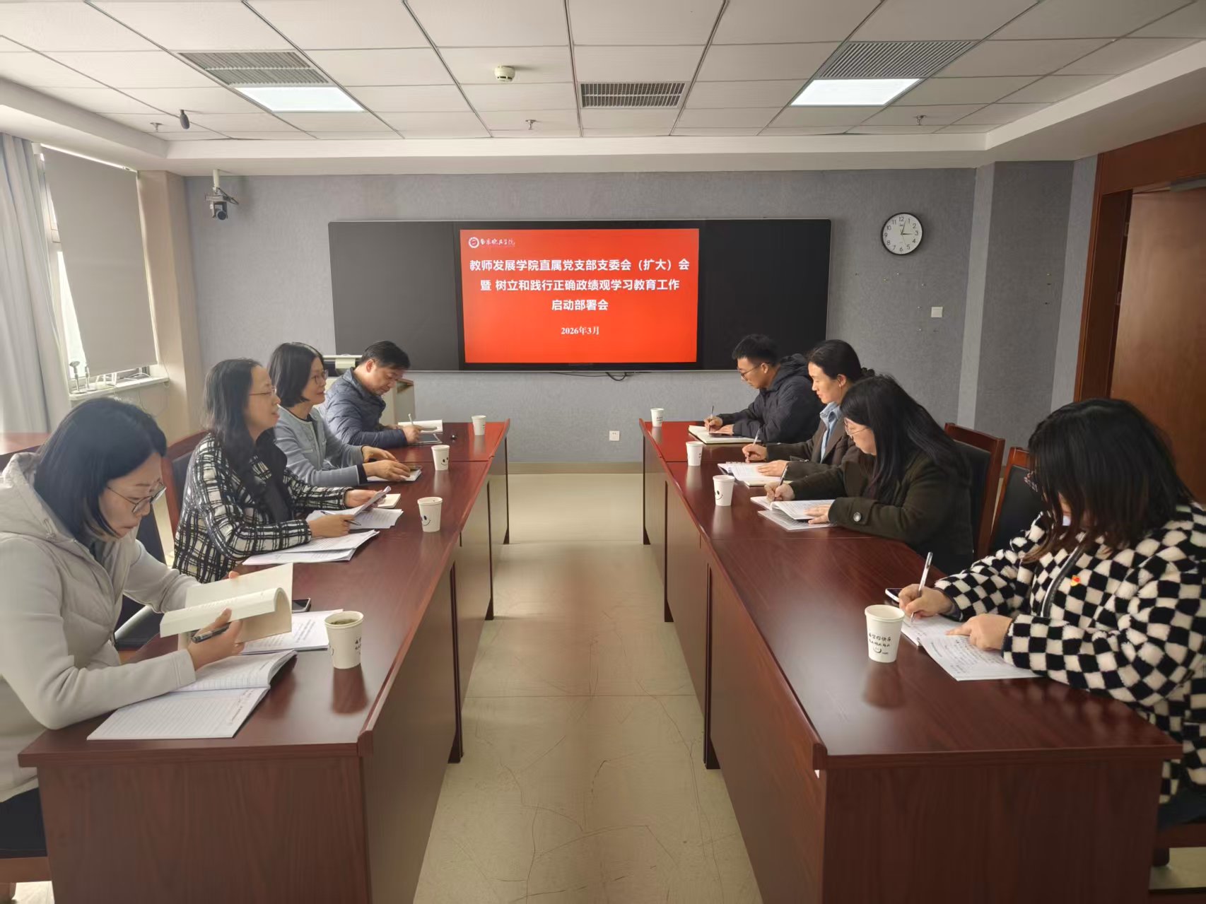 3月13日下午,教师发展学院直属党支部在莫愁校区四号楼503室召开支委会(扩大)会议暨树立和践行正确政绩观学习教育工作启动部署会。学院直属党支部书记周鹃主持会议,全体支委、学院班子成员及各党小组联络员参加会议。
