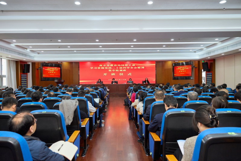 4月13日,南京市教育局局管干部学习贯彻党的二十届四中全会精神集中轮训班在我校莫愁校区开班。市教育局党组副书记、市委教育工委专职副书记柴耘,我校副校长顾勤,市教育局组织处及我校教师发展学院、南京城市基层治理学院相关负责人出席开班仪式。市教育局机关全体在职处级干部、直属学校(单位)全体在职局管干部共177人参加培训。